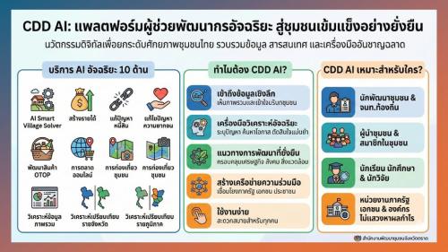 จะวางแผนพัฒนาหมู่บ้าน หรือหาทางช่วยชาวบ้านแก้หนี้... ไม่ต้องนั่งเทียนเขียนโครงการอีกต่อไป! พบกับ CDD AI ตัวช่วยสุดล้ำจากกรมการพัฒนาชุมชน ที่จะทำให้เรารู้ลึก รู้จริง เรื่องชุมชนมากกว่าเดิม