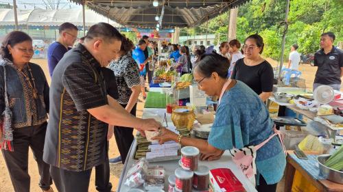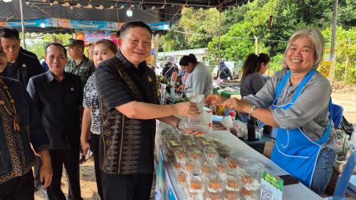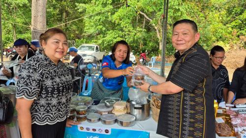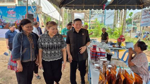 กิจกรรมย่อยที่ 2 การแสดงและจำหน่ายผลิตภัณฑ์ชุมชนอำเภอเกาะช้าง ณ บริเวณลานกิจกรรมข้างโรงแรมคชาเกาะช้าง อำเภอเกาะช้าง จังหวัดตราด พร้อมด้วย นายอำเภอเกาะช้าง หัวหน้าส่วนราชการจังหวัด อำเภอ ผู้นำท้องที่ ท้องถิ่น ภาคเอกชน สื่อมวลชน